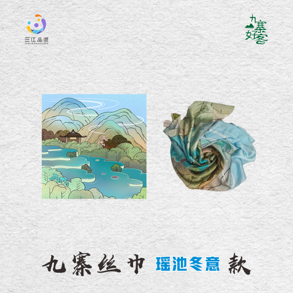 【丝巾】九寨风景插画桑蚕丝丝巾瑶池冬意款